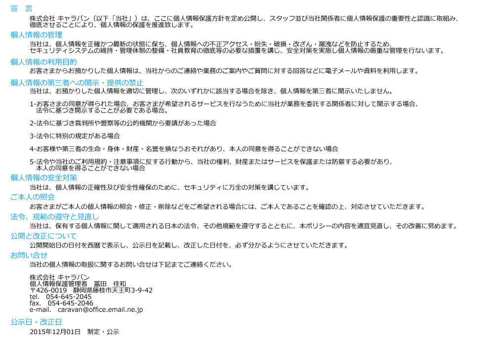 プライバシーポリシー・個人情報取り扱い規程
