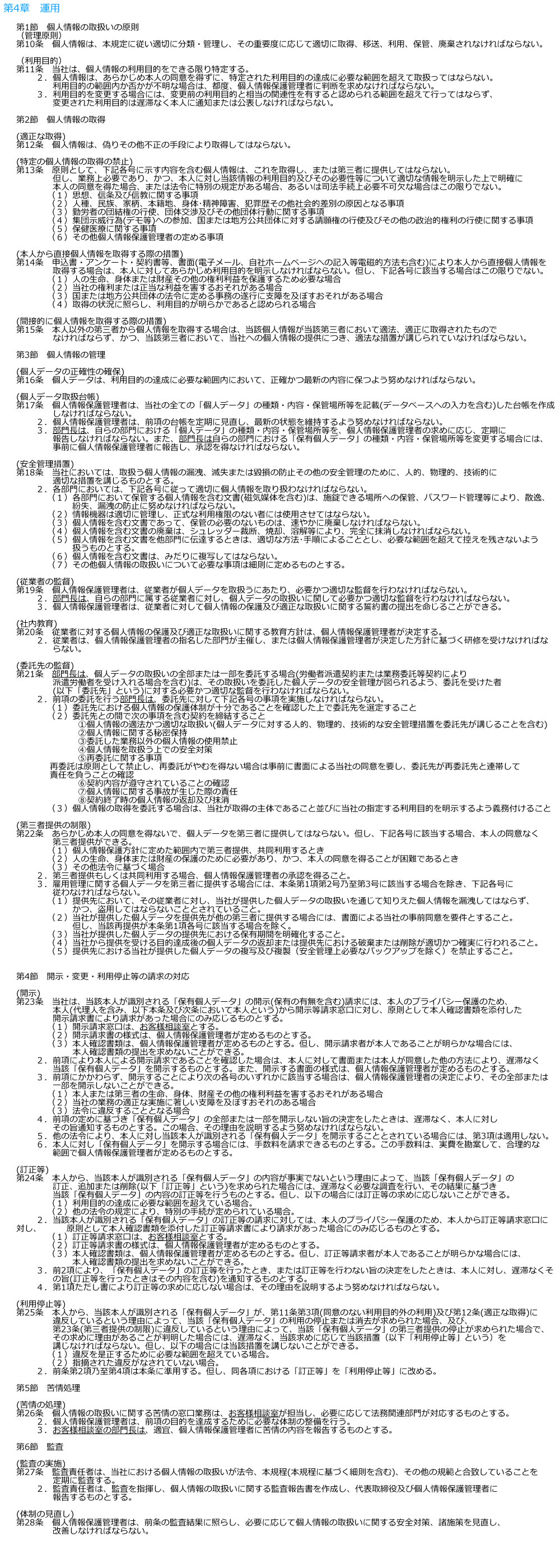 個人情報取り扱い規程